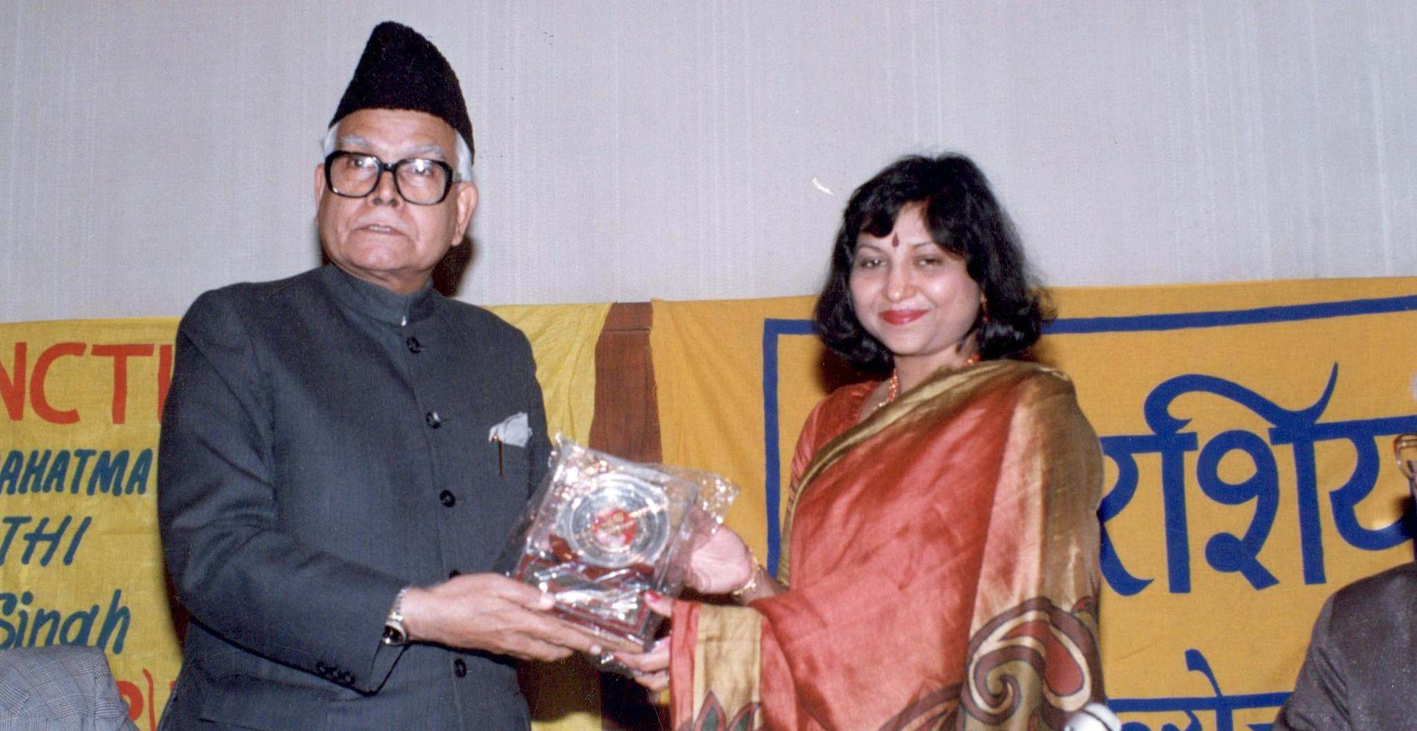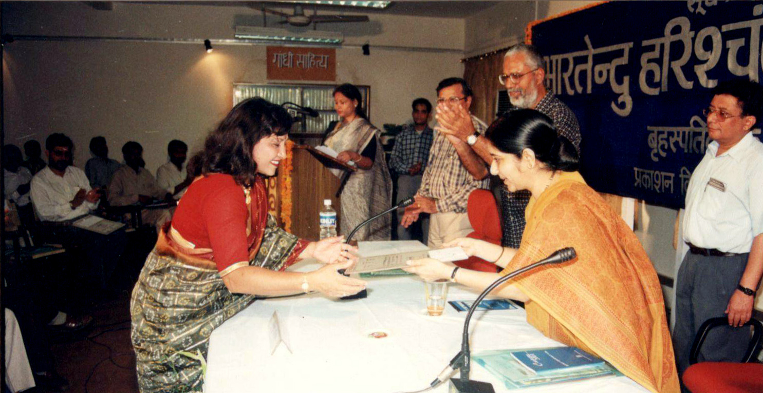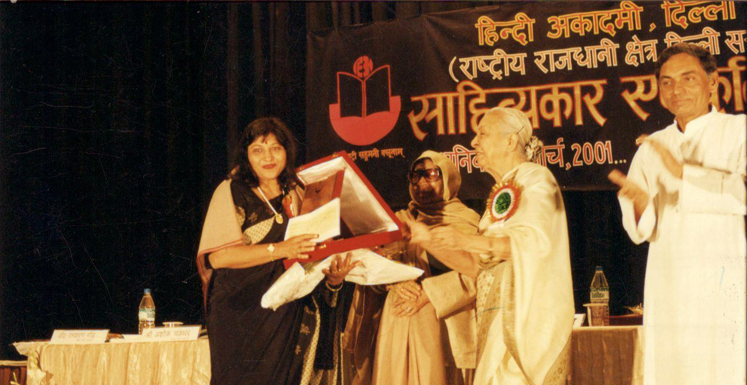 Publication Division which is under the Ministry of Information and Broadcating Government of India, has also awarded her the 'Bhartendu Harish Chandra Puraskar' in the field of childern literature for her book 'Aagey Bhadti Bhartiya Mahilayen' in the year 2000. The award was presented by the minister Sushma Swaraj.