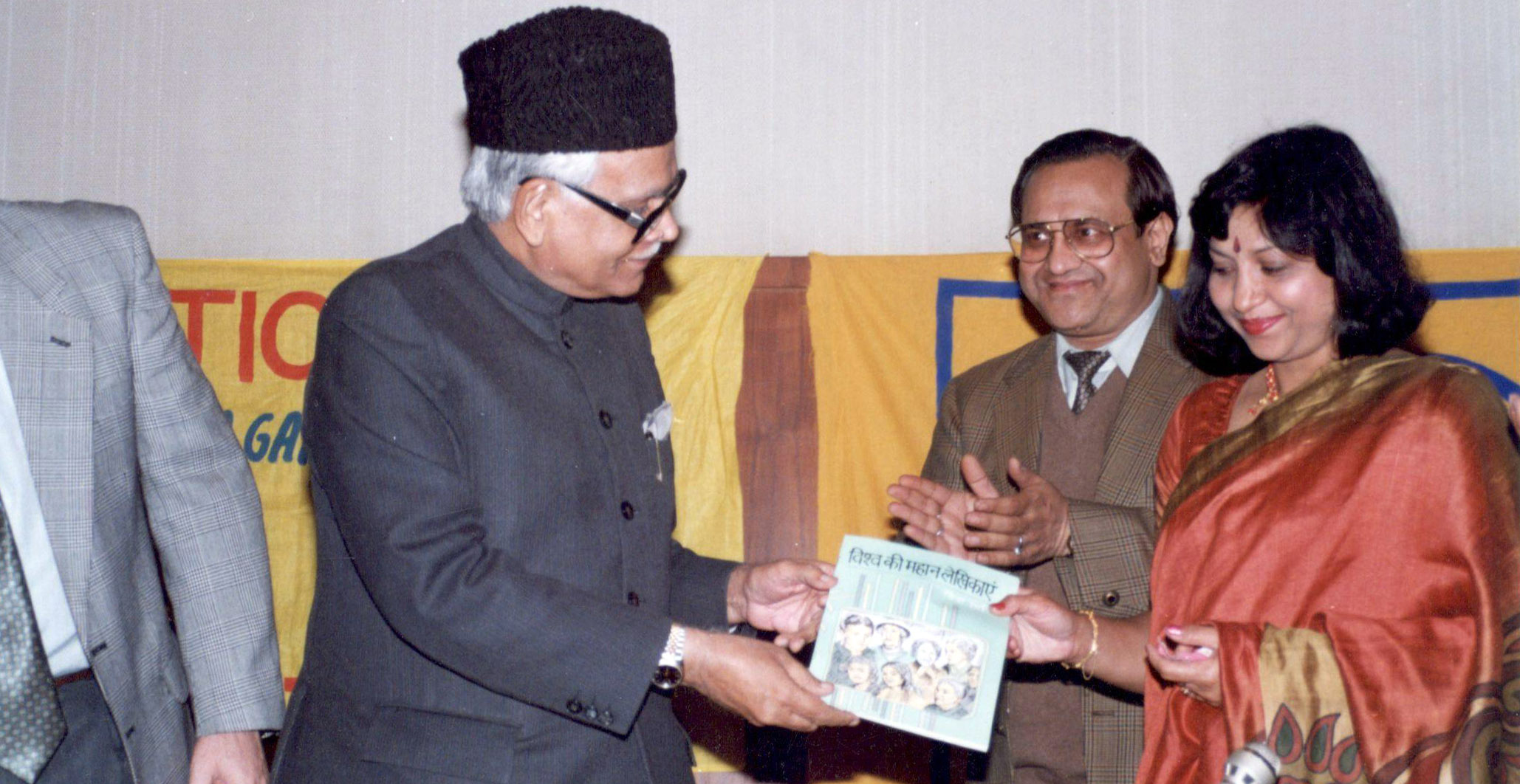 Her book Vishwa Ki Mahan Lekhikayan was release by Ex-Minister Natwar Lal.